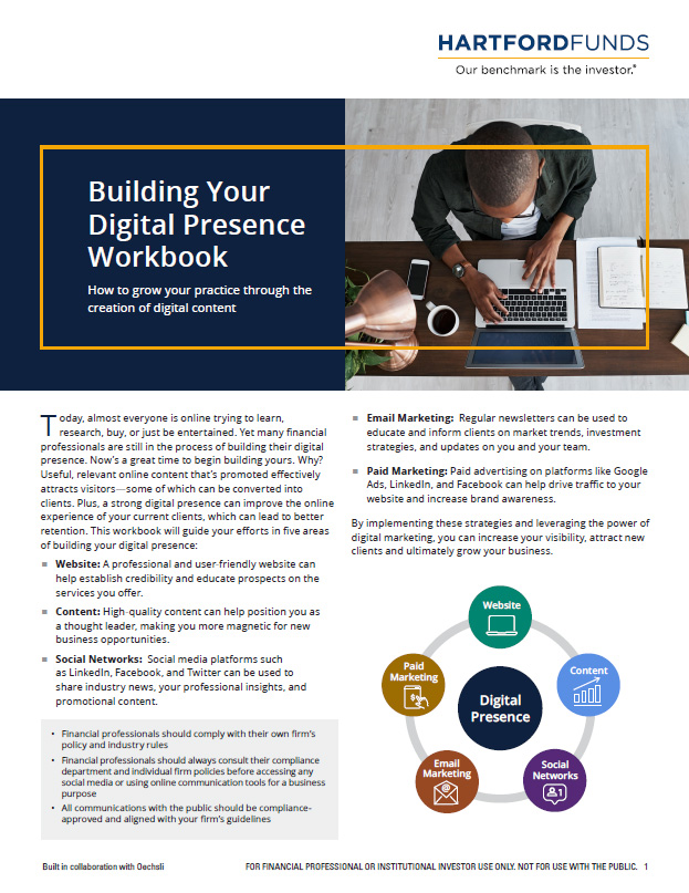 Today, almost everyone is online trying to learn, research, buy, or just be entertained. Yet many financial professionals are still in the process of building their digital presence. Now’s a great time to begin building yours. Why? Useful, relevant online content that’s promoted effectively attracts visitors—some of which can be converted into leads and ultimately clients. Plus, a strong digital presence can improve the online experience of your current clients, which can lead to better retention.