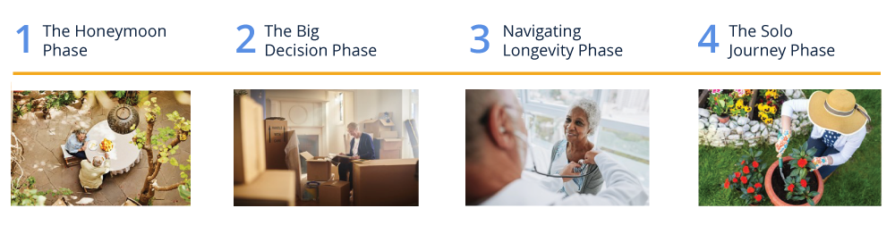 Financial resources tend to be highest in the Honeymoon Phase since retirees have just started spending their retirement savings. For most, aging hasn’t taken its toll on bodies and minds, therefore, our cognitive, physical, and social resources also tend to be at their highest level. As a result, our lifestyle and well-being are often comparable to our life during full-time work.