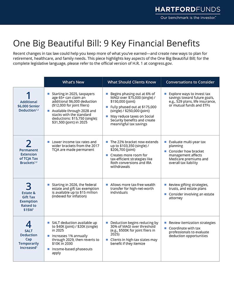 | 3 | Ask your Hartford Funds advisor consultant about hosting a “9 Ways the “One Big Beautiful Bill” Could Impact Your Finances” client education event. |