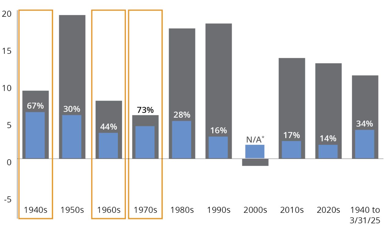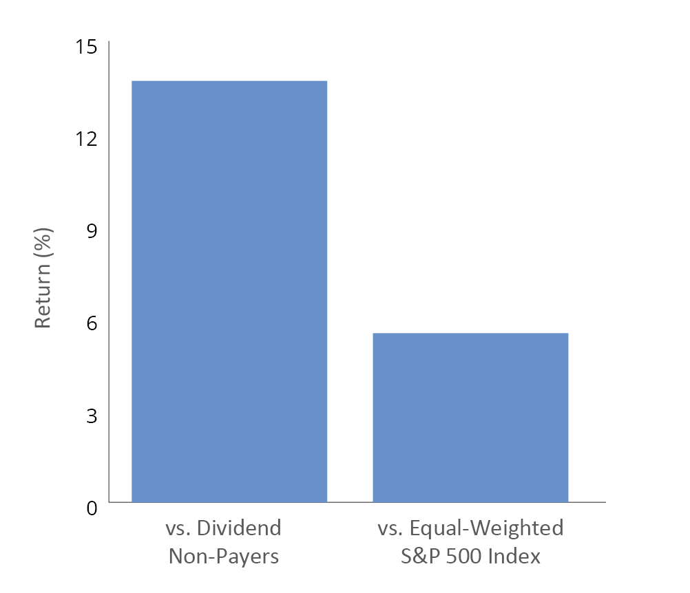 Though an obvious draw of dividend-paying stocks is income that contributes to total return, they may also hint at a company’s character and strategy. In times of market uncertainty, investors tend to seek out companies that display resilience and a history of long-term performance. Dividend-paying companies frequently fit this profile, as their ability to return capital to shareholders on an ongoing basis generally reflects a well-established business with a strong market footprint. These companies typically operate in well-understood industries with proven business models, making them less susceptible to the dramatic swings that can affect younger, growth-oriented companies.