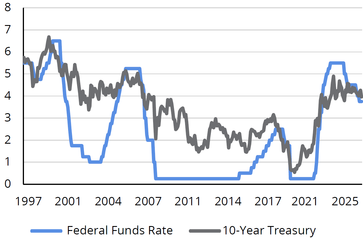 - Interest rates remain higher, changing the relative appeal of stocks, bonds, and cash.