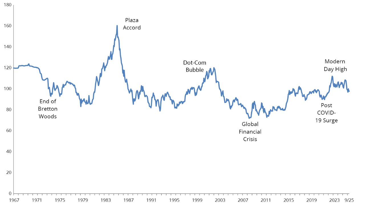 Emerging Markets are represented by the MSCI Emerging Markets Index, which tracks large- and mid-cap equities across emerging economies worldwide, covering approximately 85% of their free-float-adjusted market capitalization. Because the net return version only dates back to 1/1/01, performance reflects a combination of the gross return index (from 1/1/88) and the net return index (from 2001) to provide a more complete historical perspective.