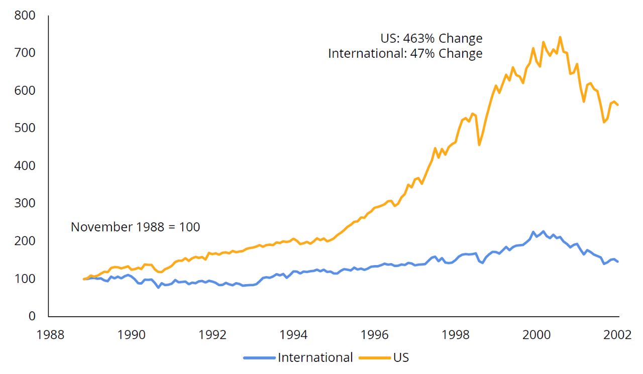 What Happened Next: As US earnings growth and market share came under pressure from the high interest rates and inflation of the early 1970s, the Nifty 50 stocks began to unravel. What followed was a two-decade period of underperformance for the US market relative to international stocks, exacerbated by rising foreign competition, the collapse of the savings and loan industry, and the 1987 stock-market crash.