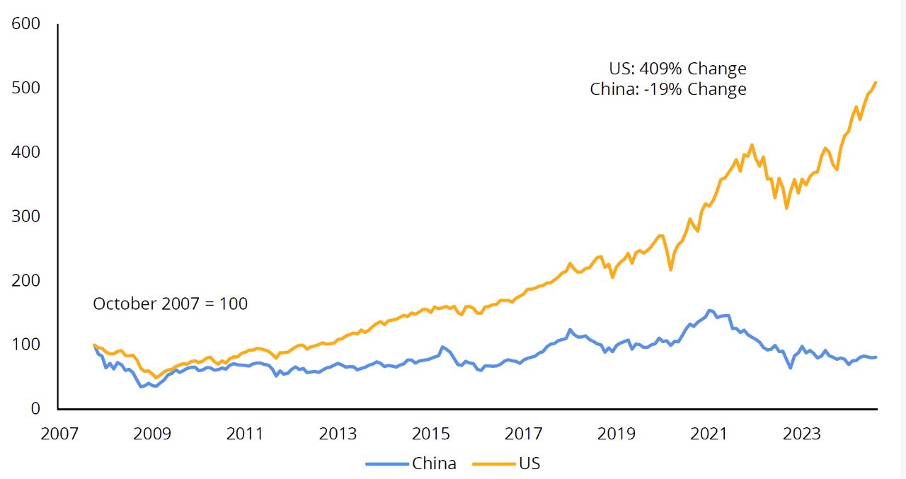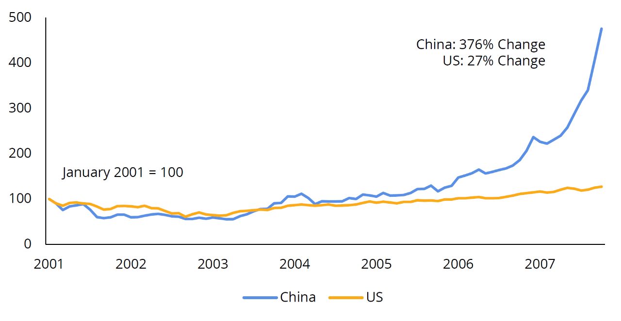 The Narrative: During the late 1980s, Japan came to dominate technological innovation and manufacturing efficiency, capturing significant market share in critical industries such as automobiles (Toyota, Honda) and consumer electronics (Sony, Panasonic, Nintendo). Japan also became home to the world’s largest stock market, accounting for roughly 45% of the global stock market, as investors were drawn to its strong profit growth, technological advantages, and impressive returns (FIGURE 1).