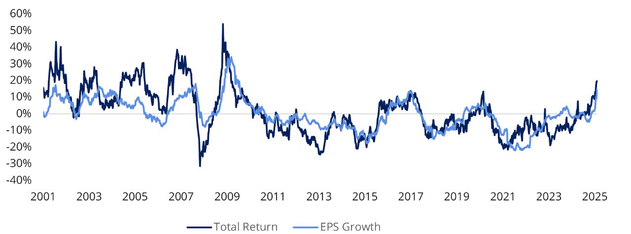 7. India – India’s economy is expected to grow by more than 10% this year on a nominal basis, driven by normalizing inflation, pro-consumption policies instituted last year (e.g., cuts in income taxes, goods and services taxes, and interest rates), and reduced regulation.5 Fiscal consolidation has cut the budget deficit by more than half, and the cheaper currency has helped exports. President Donald Trump’s recent reduction in tariffs is an additional plus. Finally, earnings are expected to recover after a weak patch.